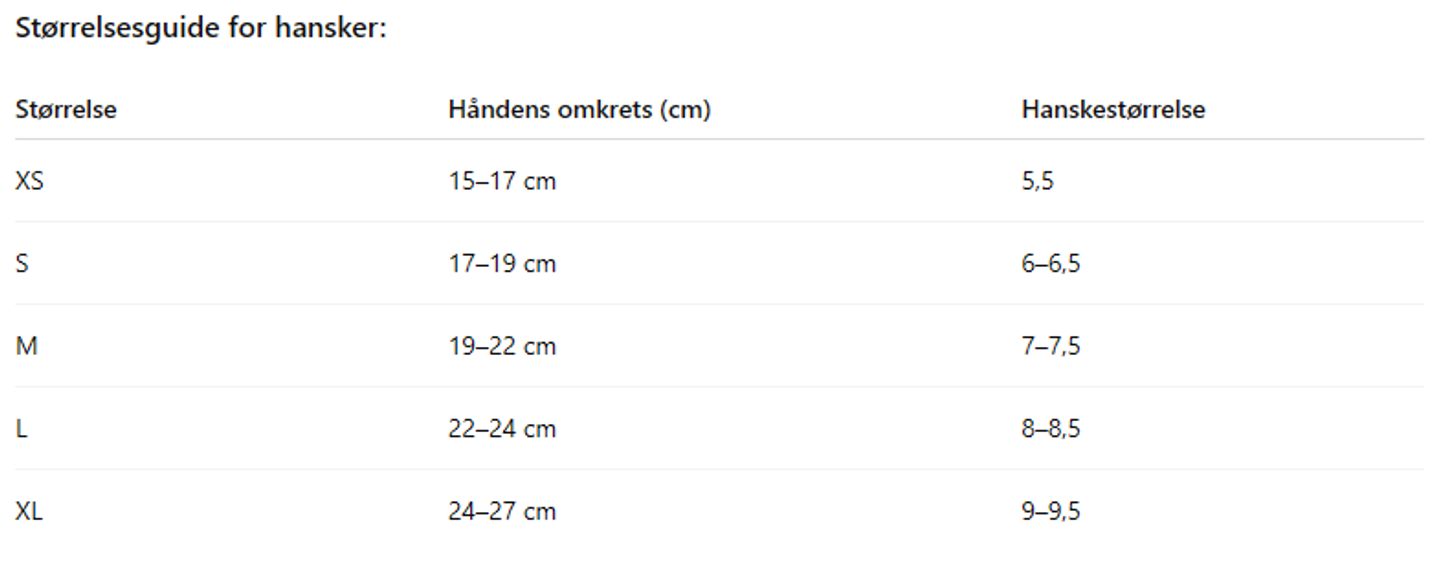 Hvilken størrelse hanske skal jeg velge?